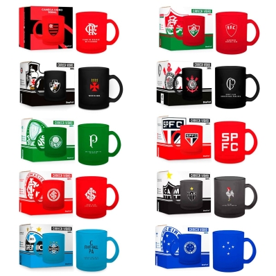 CANECA DE VIDRO JATEADO DIAMOND 300ML TIMES DE FUTEBOL BRASFOOT