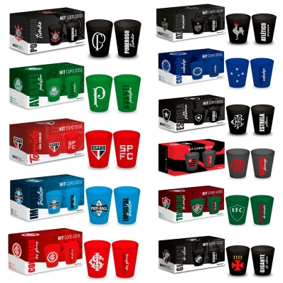 COPO SHOT DOSE VIDRO JATEADO CAIXA 2 UNIDADES 55ML TIMES DE FUTEBOL BRASFOOT