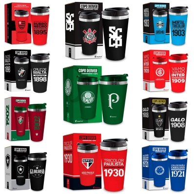 COPO TERMICO EMBORRACHADO INOX 450ML TIMES DE FUTEBOL BRASFOOT
