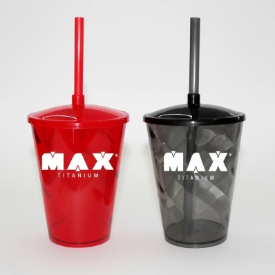 KIT 2X COQUETELEIRA COPO ACRÍLICO COM CANUDO 500ML MAX TITANIUM