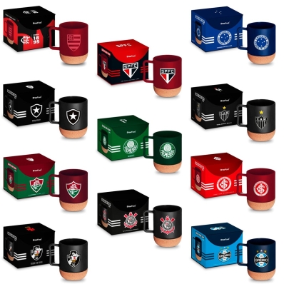 CANECA DE VIDRO COM PORTA COPOS CORK 350ML TIMES DE FUTEBOL BRASFOOT