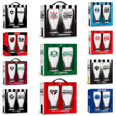 COPO DE CERVEJA 200ML MUNICH CAIXA COM 2 UNIDADES TIMES DE FUTEBOL BRASFOOT