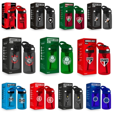 GARRAFA COM ALÇA E CANUDO SPOTY 480ML TIMES DE FUTEBOL BRASFOOT