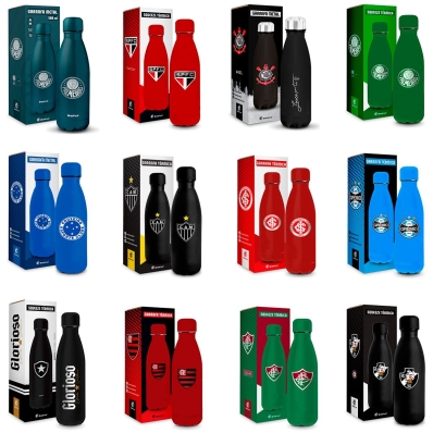 GARRAFA TÉRMICA METAL EMBORRACHADA 500ML NEO TIMES DE FUTEBOL BRASFOOT